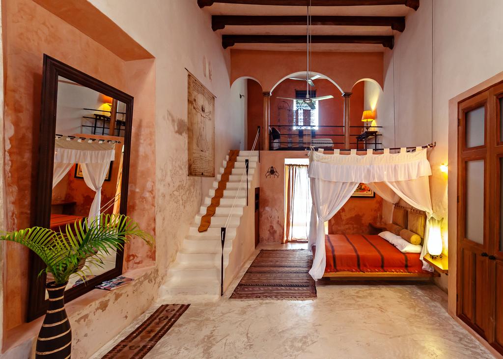Hacienda Sacnicte destaca por su arquitectura tradicional, rodeada de vegetación y espacios abiertos que transmiten calma. 🌿 Sus habitaciones están diseñadas para ofrecer comodidad sin perder el estilo rústico característico de la región. Además, sus jardines y áreas comunes invitan a relajarse, leer o simplemente disfrutar del silencio que caracteriza a Izamal.
