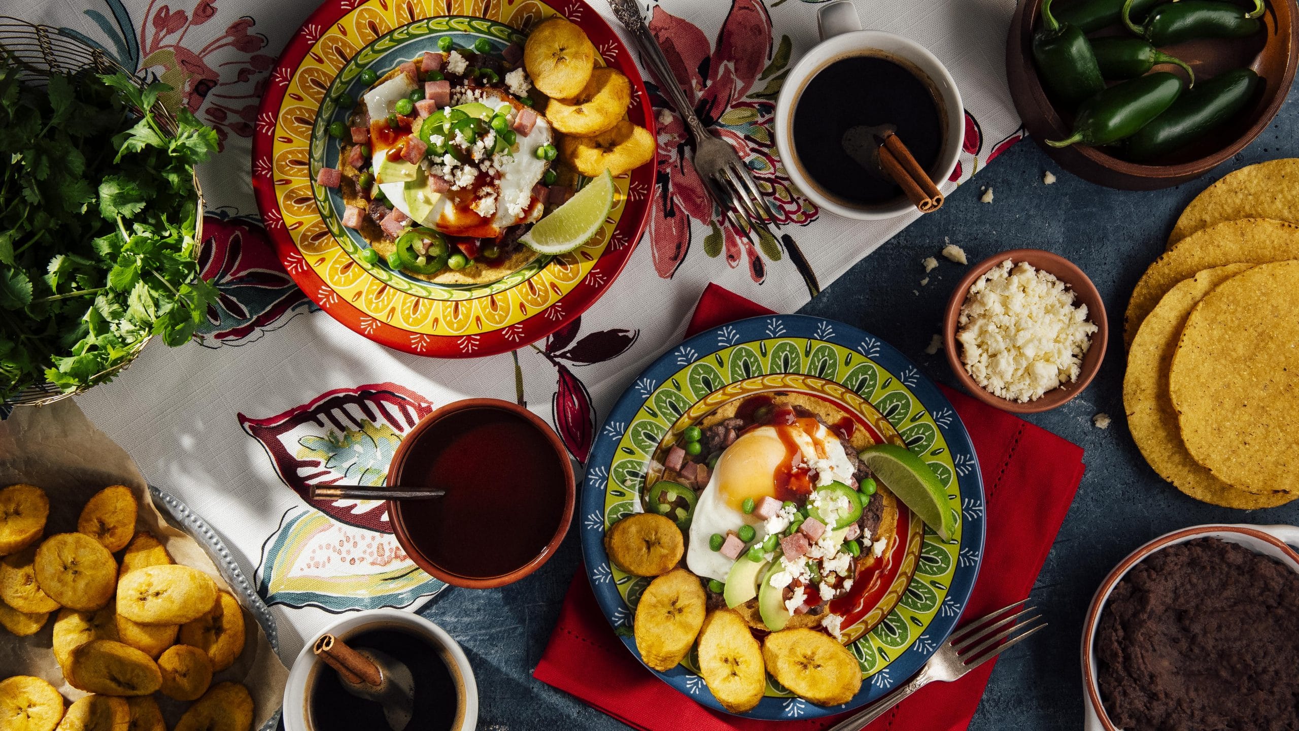 Esta combinación es la que define su identidad: el contraste entre lo salado del jamón, la dulzura del plátano frito, la untuosidad del frijol y la frescura de la salsa sobre el huevo.