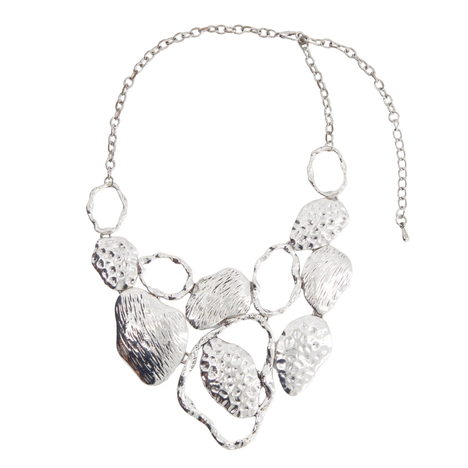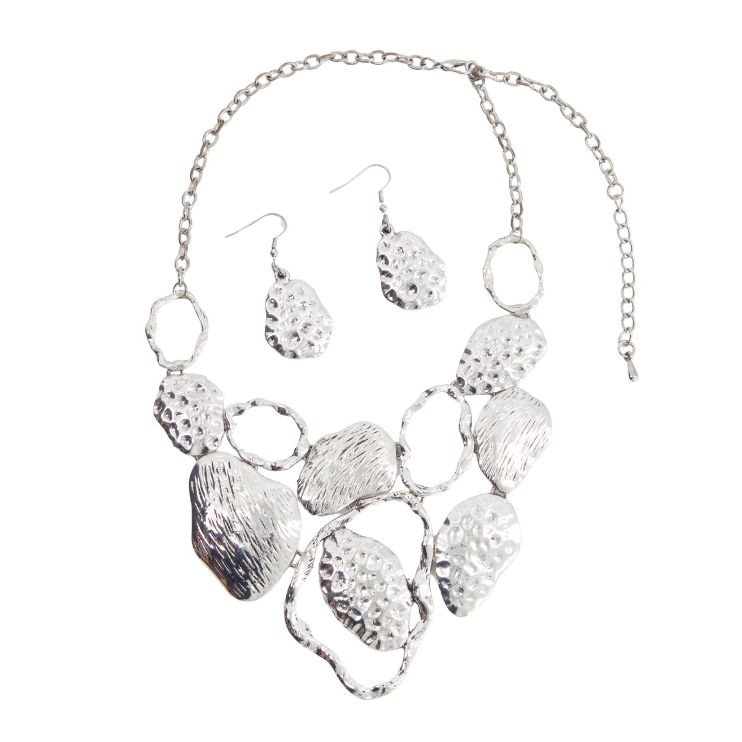 La joyería de León y Delgado nace del encuentro entre los viajes, el diseño y la materia. Este juego de collar y aretes en tono plata martillada evoca las texturas orgánicas de la naturaleza, recordándonos a las formaciones rocosas de cenotes, las capas de la piedra volcánica y los minerales del sur de México. Cada elemento parece un fragmento rescatado del tiempo y moldeado con un espíritu libre y contemporáneo.
