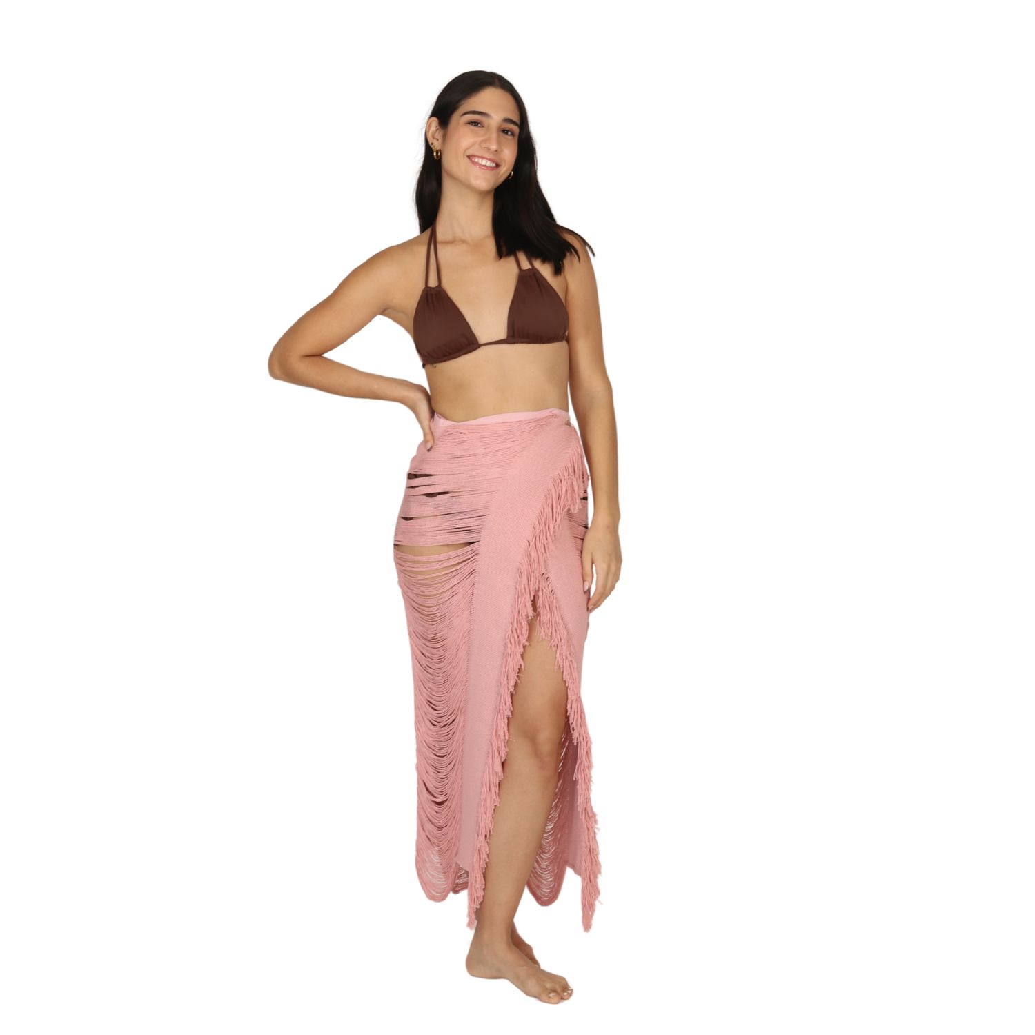 El tono rosa palo aporta un matiz romántico y femenino, fácil de combinar con diferentes estilos y colores de trajes de baño. Es una prenda versátil que puede usarse como salida de baño, falda casual o incluso como accesorio creativo para sesiones de fotos veraniegas. Ideal para mujeres que buscan resaltar su estilo personal con prendas únicas, artesanales y con identidad propia.