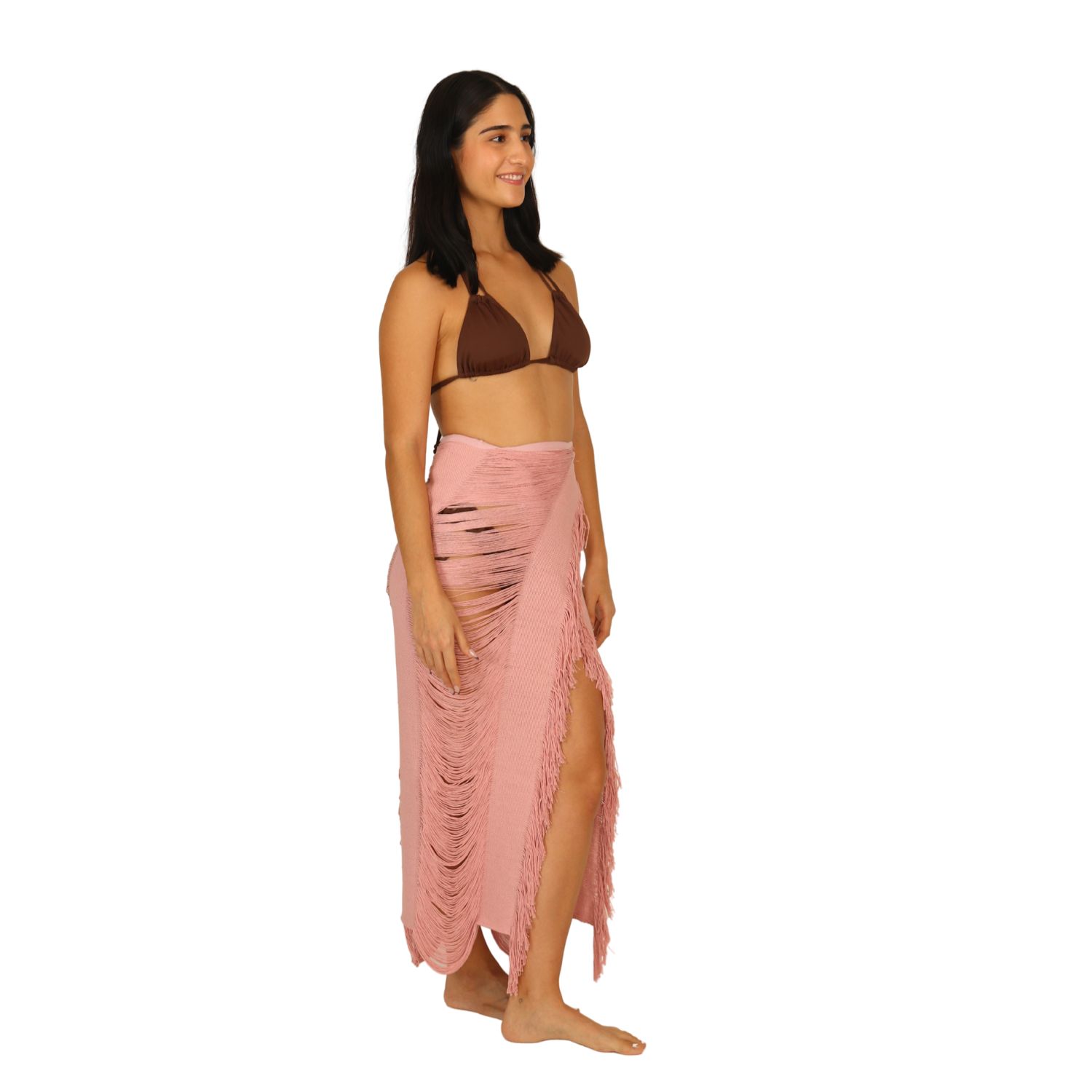 Pareo Deshilado Rosa -Una Pieza, tejido ligero, suave al tacto y cuidadosamente trabajado en franjas deshiladas.