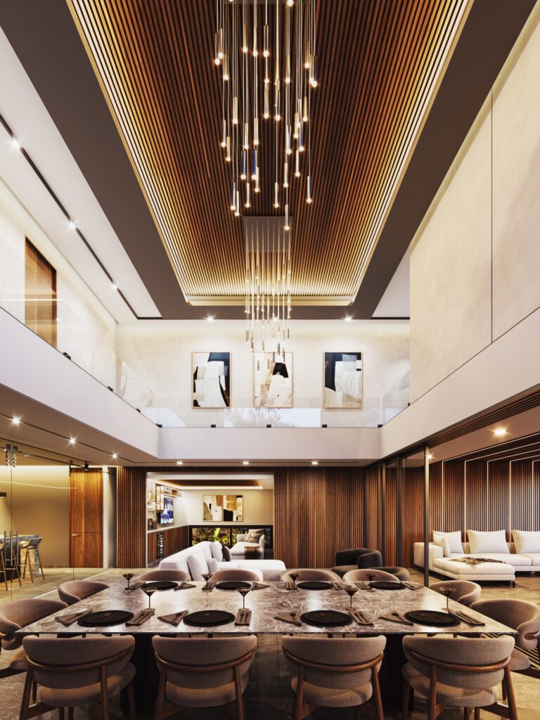 Aire acondicionado de paquete en sala, comedor doble altura