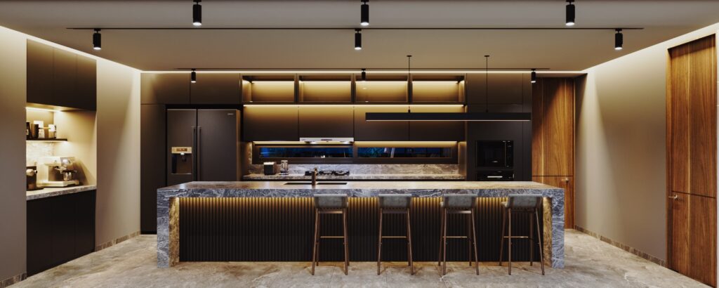 Cocina integral equipada con campana, parilla y hornos marca SMEG o similar