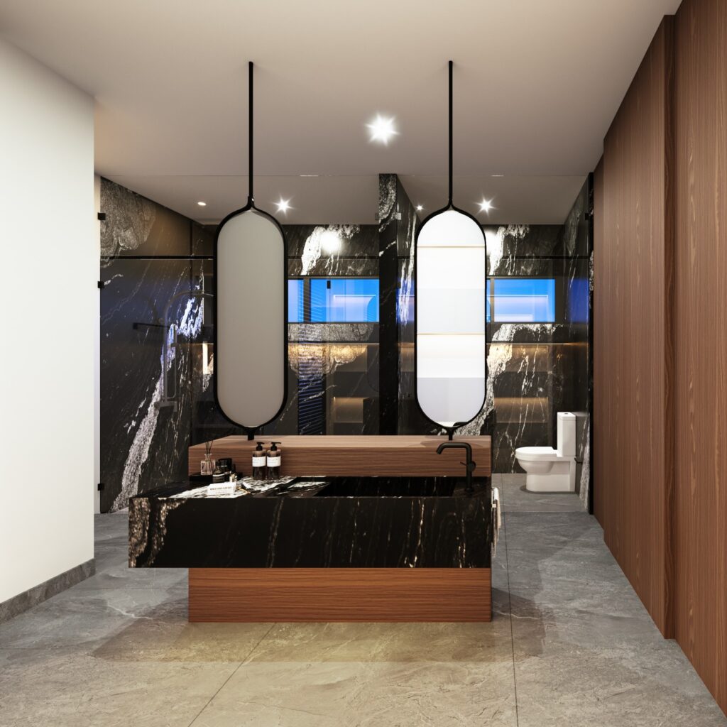 Mesetas de granito negro marquina en baños