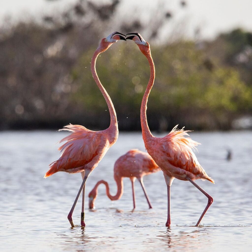 La experiencia en Río Lagartos no se limita a sus colores. Este destino es hogar de una gran variedad de especies, destacando los flamencos rosados, que pueden observarse en su hábitat natural, especialmente durante ciertas temporadas del año. Además, durante los recorridos en lancha es común ver cocodrilos, aves exóticas y extensos manglares.